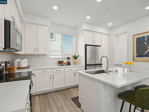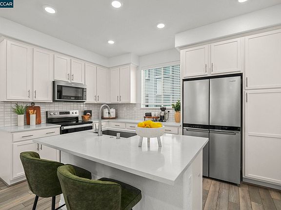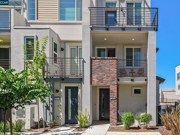 Experience modern living at its finest in this 2023-built townhome-style end unit condo located in Alameda’s sought-after water front Bay37 community. This 2BD/1.5BA home offers approximately 1,100 sq. ft. of bright, open space designed for comfort and functionality. The entry level features an attached 1-car garage, convenient powder room, and extra storage. Upstairs, enjoy a sleek chef’s kitchen, open dining area, and spacious living room that extends to a private balcony—ideal for morning coffee or evening relaxation. The top floor offers two sunny bedrooms, with one offering its own balcony for added privacy and outdoor enjoyment. This home is thoughtfully equipped with smart-home technology, A/C, dual-zone heating, owned solar and energy-efficient systems throughout. The location is unmatched—steps from the Alameda waterfront with a free ferry to Jack London Square every 30 minutes and two additional SF Bay Ferry routes about a mile away, making your San Francisco commute simple and affordable. Walk to Target, Safeway, In-N-Out, restaurants, and cafés at Alameda Landing. Bay37 also features a public park, picnic areas, playground, dock, and scenic waterfront trails. Enjoy the perfect balance of style, convenience, and vibrant community living in this exceptional home.
