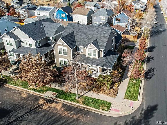 Beautifully updated 4-bed, 5-bath home in the heart of Central Park with nearly 4,000 sq ft of finished living space. Perfectly situated in desirable Eastbridge, this home sits directly across from a peaceful neighborhood park and features an expansive wrap-around front porch — ideal for relaxing or connecting with neighbors. Inside, you’ll find gorgeous hardwood floors throughout the main and upper levels and an open, inviting floor plan perfect for entertaining. The completely renovated gourmet kitchen is the true heart of the home, showcasing top-of-the-line appliances, a gas cooktop, double ovens, and a generous island that flows seamlessly into the living areas and private backyard retreat. A spacious eat-in area, elegant dining room, and main-floor office with custom built-ins complete the main level. Upstairs, the luxurious primary suite features an expansive walk-in closet with custom built-ins, a spa-like five-piece bath with soaking tub and dual vanities, and a convenient laundry room. During the major remodel and addition, a large storage area above the garage was added with easy access from the suite. Thoughtful past updates have created abundant storage throughout the home. The fully finished basement extends your living space with an exercise room, second family room, wet bar with dishwasher, game/media areas, and an additional bedroom with ¾ bath. Modern upgrades include a newer furnace, A/C, tankless water heater, roof, and EV charger. The outdoor space is a natural extension of the home — private, beautifully landscaped, and ideal for gatherings. Just a short stroll to Stanley Marketplace, Eastbridge shops and dining, F-15 Pool, Westerly Creek trails, and the Central Park Rec Center. Minutes to Anschutz Medical Campus, DIA, and downtown via the A-Line light rail. A perfect home in the perfect neighborhood — Central Park living at its finest!