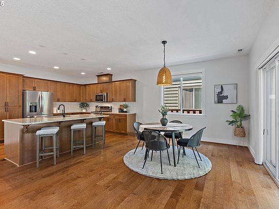Come enjoy that Wilsonville lifestyle! This home is filled with upgrades & custom touches, from show-stopping built-ins, to beautiful Rejuvenation lighting fixtures. Downstairs premieres hand-scraped engineered hardwoods throughout, highlighted by large windows and 9ft ceilings that let in the beautiful natural light. The kitchen offers granite slab countertops, an oversized island with an eat bar and timeless backsplash tile work installed in 2022. The upgraded stainless steel gas appliances are the cherry on top to your gourmet experience. You'll find a double Kitchenaid convection oven, a built-in microwave & dishwasher, and a Whirpool french door refrigerator. Upstairs, you'll enjoy the spacious bedrooms with the added convenience of the laundry room just around the corner! The loft invites a flexible space for either work or play. The primary suite promotes peace & relaxation with its serene greenspace views, airy vaulted ceilings and generous ensuite with a soaking tub. Did I mention the spacious double closets? This primary really has it all! The lush neighborhood will welcome you home with its walking trails and parks! Access the convenience of Wilsonville, with the Town Center Park and shops less than 1 mile away! Craving a night out on the town? The drive into Portland is a breeze! Two car garage is equipped with a level 2 EV charging outlet. Pre-listing inspected, with radon & sewer scope completed for your peace of mind; available upon request! OPEN HOUSE Saturday December 6th 12-2PM!