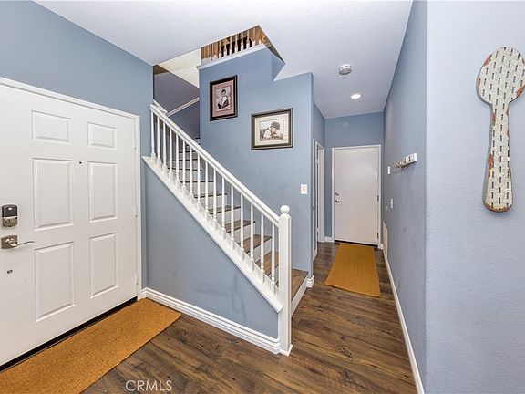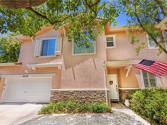 Welcome home to this gorgeous Valencia home! Quiet location in the back of the complex with no rear neighbors. Bright, open kitchen with quartz countertops, stainless steel appliances (refrigerator included!) and a center island. Beautiful wood-like flooring and upgraded baseboards throughout. Spacious primary bedroom has a custom barn door with walk-in closet and an ensuite bathroom. The other two bedrooms are upstairs, along with the laundry area (washer and dryer included!). There is also a two-car attached garage with direct access to the home. Hurry! Will not last!