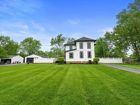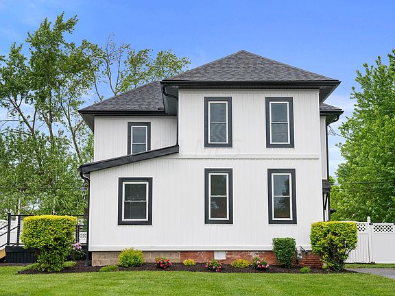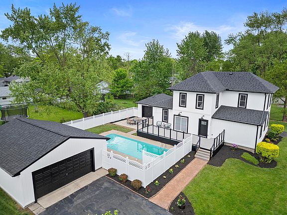A true one-of-a-kind, fully renovated farmhouse. Offering four spacious bedrooms, two and a half bathrooms and featuring a first-floor primary suite. The ensuite bath has dual sinks & a custom tile shower w/double shower heads. The open concept living room, dining and kitchen are perfect for entertaining. The kitchen offers beautiful quartz countertops, SS appliances & an oversized pantry. First floor laundry features a wash sink and additional cabinetry. Step outside to several outdoor spaces offered for gatherings. A custom all weather deck that overlooks the fiberglass in-ground pool. Tandem two car garage, plus an additional one car bonus garage for a pool house/extra storage. This home sits on a rare, oversized lot w/dual driveways. Conveniently located to Grove City's Town Center.
