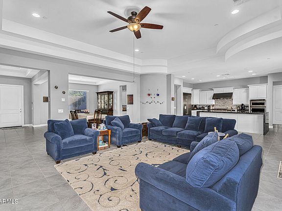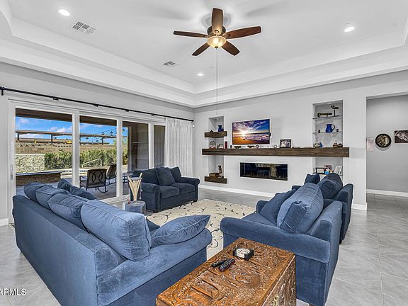 The north-facing backyard is a true retreat, featuring a sleek pool, a spacious covered patio, and a sophisticated fire pit—perfect for entertaining. Inside, tall ceilings and cool to the touch tile flooring anchors the expansive great room and gourmet kitchen, which boasts a commercial-grade KitchenAid appliance package and a massive island. Guest quarters, 2 dishwashers, multiple walk in pantry's and permanent outdoor Christmas lights are also here for upgraded touches. Luxury living at it's fin and 2 dishwashers. Seating at a massive island welcomes diners, with yet another breakfast nook for casual meals. Next-Gen living is welcome here with an attached casita including a separate exterior entrance. Floor plan includes a 3 bedroom guest/kids wing w/bonus room, an exquisite primary bed & bath plus separate home office. This Mannington Floor plan is among the most sought after floor plans in this newer subdivision of Sky Crossing with 2 community pools and clubhouses, a gated entrance, workout facility, walking paths and a new elementary school. Moments to Desert Ridge with hundreds of shops and restaurants, the 51 and 101 freeways for easy commuting, Kierland, the Quarter and more.