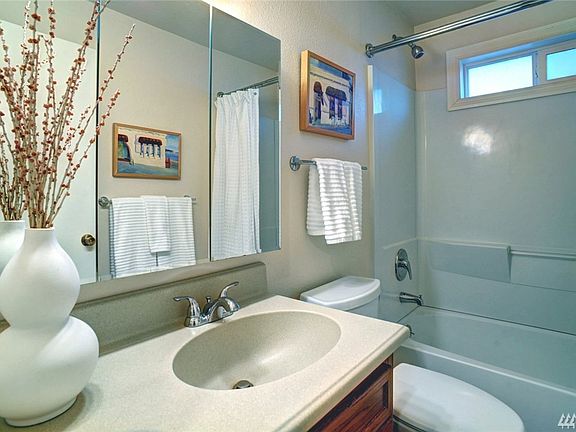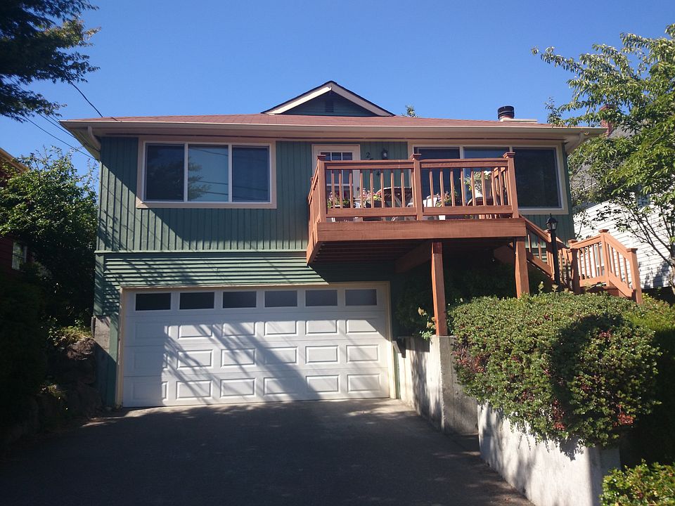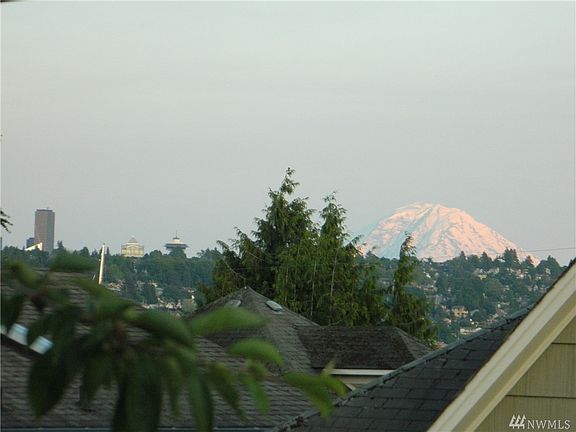 Always find parking w 2 car garage + 3 off street spots! Bright living areas with a city view over the ship canal with Mt Rainier & Space Needle too! Updated Kitchen, baths, laundry and full A/C - with automatic sprinkler for mature, low-maintenance yard. Sunset Hill side of Ballard near Shilshole Bay & The Locks! Wide, quiet street of single family homes. 5 bedrooms (two masters) for all your guests and friends!