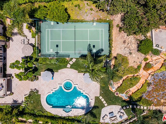 Contemporary Mediterranean Villa available for long or short term lease for $45,000 per month. Enter the lavish two story sun filled foyer into the beautifully fully furnished 7 bedroom home with various formal or informal living rooms. Completely renovated in 1998 with various size-able rooms perfectly comfortable for two people or large scale entertaining, accented with beautiful large windows to let the outside in. Large fully equipped kitchen with high end appliances, butler counter for easy dining room service, additional counter and full size table seating. Resort like grounds, complete with multiple gathering areas. Enjoy evening cocktail hour listening to the waterfall, enjoying the blazing fire pit or BBQ Steak, Salmon, even Vegetarian/Vegan meals. Treat yourself to outdoor activities in the swimming pool, soaking in the spa, play a game of tennis or relax on the lounge under the umbrella. Security Deposit to be adjusted by length of stay. Neighborhood has 24 hour patrol, a Fantastic Get-Away only minutes from Beverly Hills Restaurants & first class shopping.