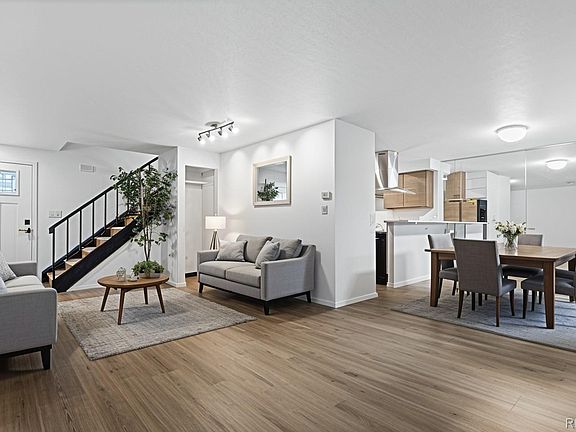 Experience luxury living in this stunning, high-end remodeled townhome in The Shores—one of Aurora’s most tranquil & picturesque communities, known for its serene pond, waterfall, scenic trails & resort-style amenities including a clubhouse, indoor/outdoor pools, hot tub & tennis courts. The bright, modern kitchen is a true showstopper—featuring new espresso color Shaker style cabinetry, quartz countertops, undermount sink & a full suite of premium stainless steel Samsung SmartThings appliances. The fingerprint-resistant, smart side-by-side refrigerator offers: Beverage Center - AutoFill water pitcher - Dual Auto Ice Maker - Power Touch Sensor for auto-open door - & Wi-Fi control. The SmartThings fingerprint-resistant oven/range takes it even further with Wi-Fi connectivity - remote oven preheat/temp control - voice control - Smart Dial - Smart Oven Camera - Flex Duo for two-zone cooking - Air Fry - Air Sous Vide - Rapid Boil - Convection+ - built-in meat thermometer. The open-concept main floor is ideal for entertaining, complete with custom track lighting & large windows that fill the home with natural light. Upstairs, the primary suite includes a walk-in closet, new Berber carpet & attic fan. This beautifully updated home features all-new windows, central A/C, luxury vinyl plank flooring on the main level, a spacious private patio with breathtaking views of the community pond/waterfall—perfect for outdoor relaxation or entertaining. The finished basement offers flexibility for a non-conforming bedroom, rec room, or gym, and includes a half bath & full-sized washer/dryer. Additional highlights include an oversized 2-car attached garage, beautifully maintained greenbelt surroundings & a location that’s pet-friendly, peaceful & walkable trails. Quick access to I-225, DIA, Cherry Creek State Park, shopping, dining. Cherry Creek Schools - Denver Metro Area #1 top-rated schools. Discover the charm, convenience & lifestyle at The Shores — your dream home awaits.