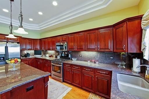 All masonry custom 60' long home! 10' & 9' ceiling height, tray ceiling, elegant moldings, decorative borders, exquisite finishes throughout this meticulously maintained home! Huge kitchen with lots of cabinet and counter space, granite counter & backsplash, under cabinet lighting, Kenmore SS appliances. Breakfast area leads to large rear deck. Vaulted ceiling in master suite, elegant master bath. Desirable location!