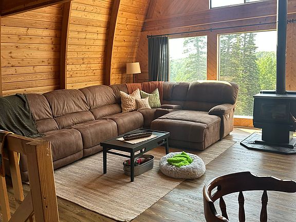 Experience elevated mountain living in this stunning off-grid cabin, the perfect summer escape or cozy winter retreat for adventure lovers. There's room for everyone with 4 bedrooms, 2.5 baths, a huge family room, a basement game room, covered decks and a private balcony. This cabin beautifully blends rustic charm with modern comfort. Surrounded by pristine wilderness and sweeping views, it's truly a year round sanctuary. Cabin is accessible year round via snowmobile or tracked vehicle in the winter months.