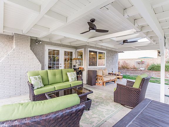 Fantastic single story home at end of short cul-de-sac with HUGE backyard! 3BR+2BA with upgrades throughout. Vaulted ceilings in the living room, cozy kitchen with granite counters, crown moulding and warm colors throughout. Remodeled bathrooms with beautiful stone throughout! Huge pie shaped backyard with solid patio cover and room for all just about anything! Be in before school starts! Don't miss this one!