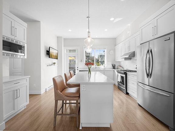 OLIVER by Woodbridge Properties — a boutique, low-density community in the heart of Grandview. This 3 bed + rec room (easily a 4th bdrm), 4 bath townhome offers nearly 1,900 sq. ft. of bright, functional living space. Main floor features 10' ceilings, oversized windows, feature wall, and a chef's kitchen with quartz island, gas range, s/s appliances, pantry, and balcony with gas BBQ hook-up right off the kitchen. Upstairs: 3 spacious bedrooms incl. primary retreat with vaulted ceilings, walk-in closet, and spa-like ensuite with double sinks and oversized walk-in shower. Lower level rec room has full bath with tub and walk-out to private fenced yard. Double side-by-side extra insulated garage fits 2 cars inside + 2 on the driveway. Watch your kids walk to Sunnyside from your living room!