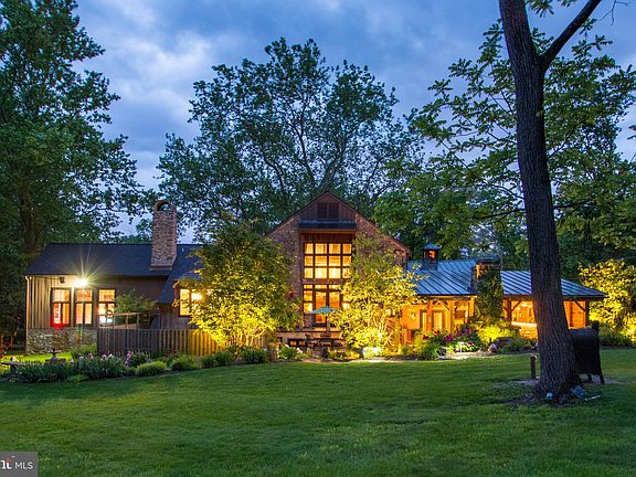 Welcome to the Barn at Ash Mill. A quintessential Bucks County converted stone bank barn circa 1729. This extraordinary property is situated on almost 12 bucolic acres encompassing both sides of one of Buckingham Township’s most desirable roads and conveniently located minutes away from the river town of New Hope, and historic Doylestown Pennsylvania with fine dining, shopping and entertainment. History abounds as it was once the studio of the renowned impressionist painter and designer of stained-glass windows George W. Sotter. He was mostly known for his association with the New Hope Art Colony. The 6,880+/- sq. ft. barn was completely and thoughtfully restored in 2012 including modern amenities while preserving the historic character and charm of an old barn. Featuring geothermal green energy heating and cooling, radiant floor heating, new roof in 2024, Anderson full divided light windows, security system with cameras, and fully integrated Sonos surround sound system. The expert craftsmanship is evident from the reclaimed weathered barnwood siding to the attention to detail and quality of materials throughout. Upon entering the foyer there is a feeling of comfort and spaciousness. A vaulted ceiling, exposed beams, plaster walls and a stone wall entrance that invites you into the massive great room. Here you’ll be amazed by the 17-foot-high ceiling, walls of windows, post and beam structure and one of the four fireplaces located on the property. The chef inspired kitchen is equipped with Wolf, Liebherr and Bosch appliances, custom cabinetry, granite countertop, large barnwood and black walnut island, 2 copper sinks and built-in banquet seating. Also conveniently located on the main level is the laundry room, powder room and the primary bedroom with two large walk-in closets. The ensuite bathroom has a vaulted ceiling, a spacious shower and a clawfoot tub. The upper level consists of two bedrooms with exposed beams, large windows and a hall bath. The lower level invites you to a large entertainment space with a stone fireplace, travertine floors, exposed beams, barnwood accents and a private ensuite bedroom. There is also a utility room, gym, sunroom, library, wine cellar, and half-bath. The two-story pub room has stone and plaster walls, leaded stained-glass windows, stone fireplace, granite counter tops, custom bar wrapped in copper, glass front refrigerator/freezer, microwave/convection oven, galvanized sink and beer tap. An office/painter’s studio with brick floors can be accessed from the main living area or a private entrance. Virtually staged room do not reflect the original hardwood flooring. The rear exterior of the Barn boasts a spectacular entertainment area with multi-level bluestone patios, a pergola covered kitchen with high-end Twin Eagle appliances, a granite countertop and peninsula. Adjacent to the kitchen is a covered post and beam sitting area with a massive stone fireplace and brick walls with boulder outcroppings that blend seamlessly with beautiful views of rock gardens and split-rail fenced pastures beyond. A private enclosed saltwater spa is just steps away. For the auto collector or car enthusiast there is a detached four-car garage with a built- in work bench and storage room. There is also a detached one car garage located on the property. A darling garden potting shed and a 14-tree organic fenced in orchard complete the rear 10+/- acres of the property. As you approach the front of the barn you are welcomed by a stone walled courtyard with brick and bluestone patios and a tranquil water feature. Overlooking an additional 2+/- acres there are views of mature trees, lush greenery and a picturesque woodshed with a moss-covered roof. Experience the ultimate in country living…. Live in a Barn!!
