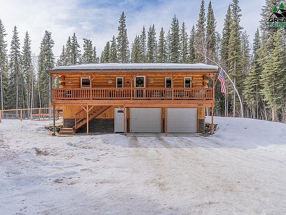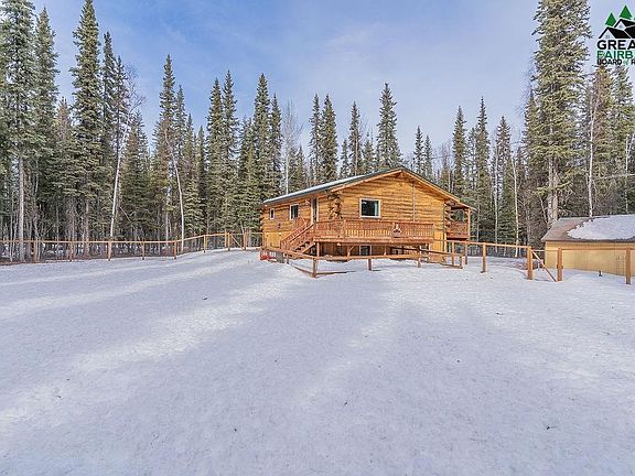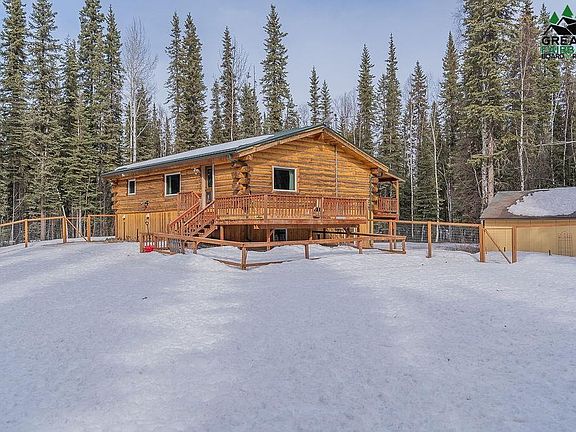 Alaska living at its finest! Beautiful 10" three-sided Custom Log family home. Energy efficient design. Radiant heat with pellet stove for backup and to add that warm feeling on those cold winter days. Nicely wooded 2-acre lot in quiet area close to North Pole and convenient to both bases. High vaulted tongue and groove ceilings make this space feel bright and open. You will love this spacious kitchen with new Hickory kitchen cabinets with attractive solid surface Quartz counter tops. The Corner pantry maximizes kitchen space. Impressive master suite with luxury bath design is sure to please. The Front covered deck welcomes all visitors and makes a great area to relax or entertain. The rear deck catches all the sun on those long summer days. The fenced yard with firepit and awesome tree house is exactly what you need to keep the kids and dogs happy and healthy. This home checks all the boxes for any family to enjoy what Alaska has to offer. There's even a low interest rate assumable loan. Don't wait, Call today!