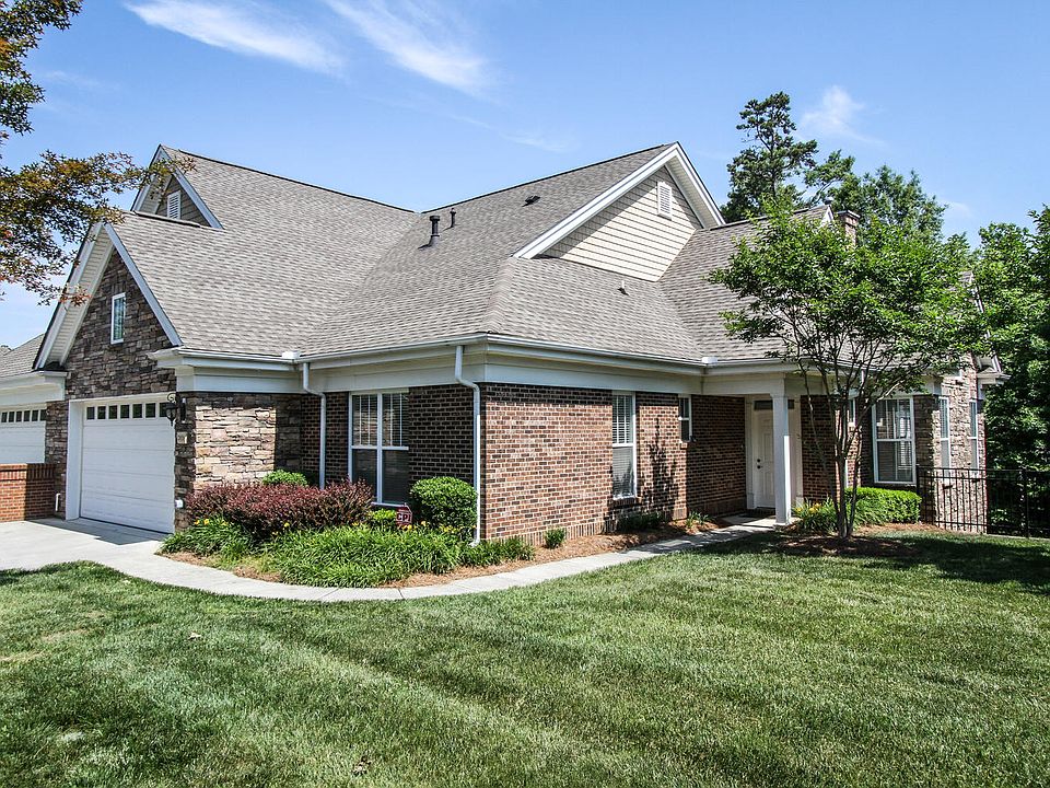 This inviting spacious home has never been resided in and feels like a new home. It offers bright and beautiful living space with large bedrooms. An awesome complex with a resort feel in a great location. Open living Room with vaulted ceiling, Fire /place, sunroom, huge finished walkout basement, ceramic paved patio. Kitchen with upgrades, 42"Rose Hill Cherry cabinetry, beautiful granite, ceramic tile. 2"wood blinds , 2 HVAC units /built-in de-humidifier. Huge MaterBedroom with tiled shower, warm seat Bidet. Two car garage. A wonderful club house offering Pool, pool table, putting green, sheltered BBQ, gas grills and walking trail with lake. Easy commute to anywhere being only 2 mins to I485, close to major shopping.
