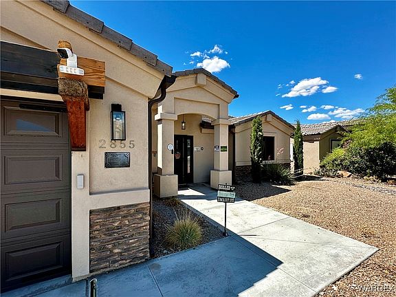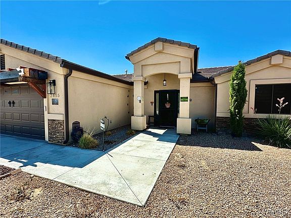 Check out 2855 N Rainbow St in Kingman, AZ a charming 3-bedroom, 2-bathroom home with an open, airy layout. The kitchen is a standout with a center island, breakfast bar, stainless steel gas stove, and ample pantry space. The large primary bedroom features a walk-in closet and a stylish bathroom with dual sinks and a walk-in shower. Interior laundry room with upper cabinet storage and a linen area with shelving. The front yard boasts low-maintenance desert rock landscaping with mature trees, while the backyard offers faux grass trimmed with rocks and shrubs. Enjoy the enclosed, screened back patio a perfect spot to unwind. With a two-car garage and a great location, this home has it all!