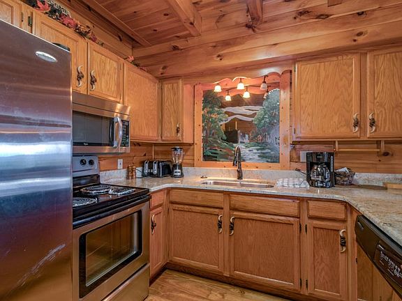 Recently renovated, this family-friendly cabin is ready to host your large group. On the main level, a spacious family room features comfy couches, which surround a flatscreen TV and gas fireplace. The living area includes a dining room table and an open kitchen with stainless steel appliances and a dishwasher, so feeding and cleaning up after your group has never been simpler. The restaurants and attractions of downtown Pigeon Forge are just a short drive away. Sevierville (known as the hometown of Dolly Parton) is slightly to the north, and you'll be close to Great Smoky Mountains National Park, which means beautiful hikes and historical sites are easy to access. Also on the main floor, a sunroom features more seating and a second gas fireplace. Abundant windows provide breathtaking views of the beautiful natural surroundings everywhere you turn. There are also plenty of board games to keep your crew entertained. Just off the game room, you'll find a media room with a large, cable-equipped flatscreen TV, perfect for a family movie night - just add snacks and beverages. The cabin also includes complimentary wireless internet so you can plan each day of your vacation as it comes.