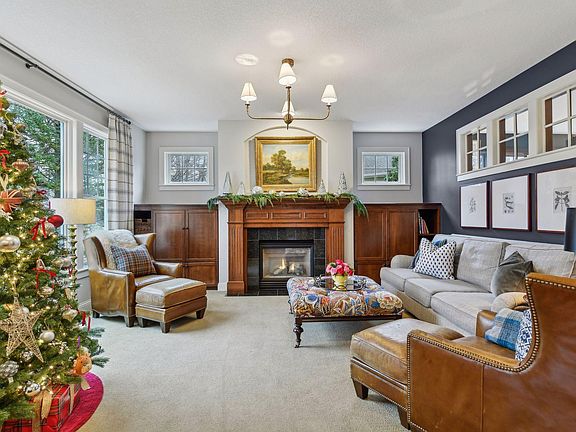 Nestled on a quiet cul-de-sac in the heart of Autumn Woods, this remarkable home, built by Charles Cudd, combines timeless elegance and modern functionality to create inviting spaces perfectly suited for today’s lifestyles. The thoughtful floor plan offers both style and convenience with exquisite architectural details including thick trim and crown molding, walnut hardwood floors, and designer lighting throughout. The eat-in Kitchen has been beautifully updated with all new quartzite countertops and backsplash, a new workstation sink and faucet, custom cherry cabinetry with pull-out drawers, and stainless steel KitchenAid appliances. The Kitchen opens to the Great Room where you will find an inviting gas fireplace flanked by custom built-ins and a picture window providing views of the woods and private backyard. For special occasions or holiday celebrations, the formal Dining Room has been updated with enameled wainscoting and a gorgeous chandelier that will elevate the ambiance of any occasion. Tucked behind a set of French doors, you will find the Home Office, where you have a private space to work from home. Upstairs, discover four spacious bedrooms, including the luxurious Primary Suite. This private oasis features a Sitting Room offering woodland views, a bath with comfort height vanities, a large soaking bathtub, tiled shower, and a walk-in closet with custom organizer system. The remaining three Junior Bedrooms share an updated full Bathroom remodeled with soapstone countertops and designer finishes. The lower level brings the fun with a second Family Room and Game Room with a walk-up wet bar. Set out your snacks and beverages for company while you cheer your favorite team on to a win! The adjacent Flex space could easily be converted into a fifth Bedroom and with the ¾ Bathroom, this would be a great space for guests. Enjoy the tranquil setting from the Screened-in Porch which overlooks a professionally landscaped yard. Including a butterfly garden with seasonal blooms, a cozy campfire ring and flagstone paver patio. Additional features of the home include custom high-end window drapery, a whole-home audio system with Sonos speakers and a well-appointed Garage with extensive cabinetry and epoxy floors. This property not only offers a serene retreat to call home, but is also a convenient location near shopping, dining, schools, and opportunities to explore 10+ miles of scenic trails and award-winning golf courses.