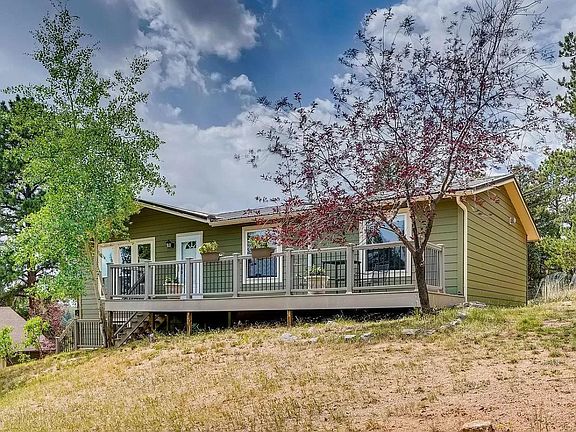 Looking for Peace among the pines and aspens? Want that mountain living feel yet need to be quick to the highway and downtown Denver?? Here is your home that meets those desires. Wonderful 4 bedroom 2 bathroom ranch home with a walk-out basement. The upper level is great for entertaining with the living room, kitchen and dining room area being open concept. The living room has a wood burning fireplace. The upper level also offers a full bath and 3 nicely sized bedrooms. The lower walk-out level offers a massive family room ready for media, game space and/or flex space you desire. It also has a thermostat regulated pellet stove, perfect for cooler weather. The laundry room is over-sized with extra storage. The master suite is private, over-sized with 3 closets and an en-suite. Just off the walk-out family room entrance is a covered stone patio. Also off the stone patio is an over sized two car detached garage with workbench. The driveway has also been recently paved for ease of access. The property also offers 2 decks for mountain living enjoyment. One off the front east facing side of the house and the other off the kitchen with Southwest mountain views perfect for entertaining. Do not miss the chance to rent this lovely 1-acre parcel. The lot is gently slopping and offers usable outdoor living and usage of the land. Definitely room for RV parking and other toys!