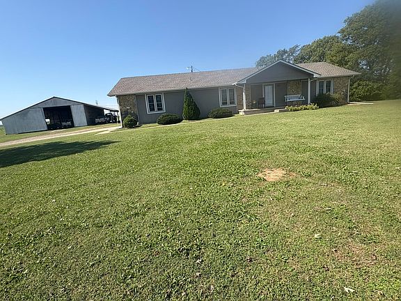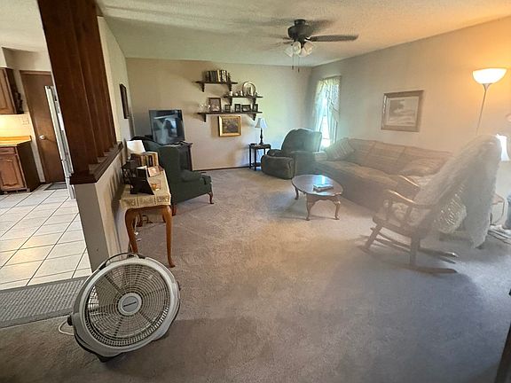 Welcome to this well-maintained three-bedroom home situated on 3.3 acres, built in 1980 and offering plenty of space inside and out. The home features a two-car attached garage, central heat and air, and convenient utilities with natural gas, Evergy electric, and rural water. The main level provides comfortable living, while the partially finished basement adds even more versatility with a cozy den, office space, utility area, storage, and a fireplace for those chilly evenings. The home is equipped with a 40-gallon hot water tank and a brand-new Whirlpool dishwasher for everyday convenience. High-speed fiber optic internet through Kanokla makes working or streaming from home a breeze. Outdoors, you’ll find valuable extras including 45’ x 54’ machine shed, and several grain bins, ideal for equipment storage or projects. This property combines the comfort of country living with functional amenities, making it a great fit for both family life and hobby or farming needs. Porch swing does not stay