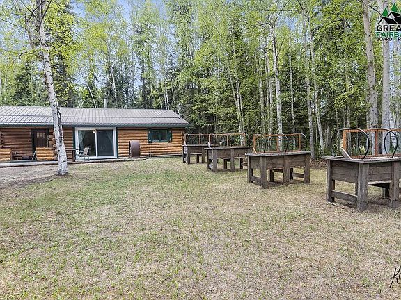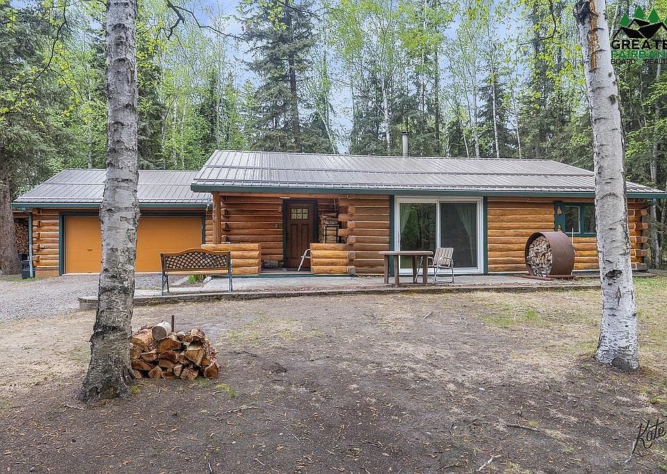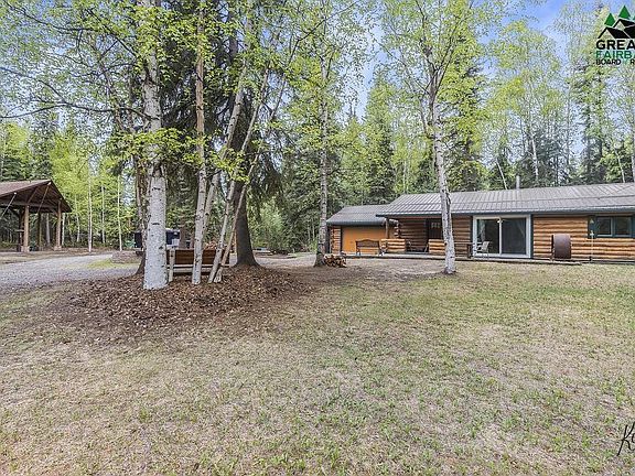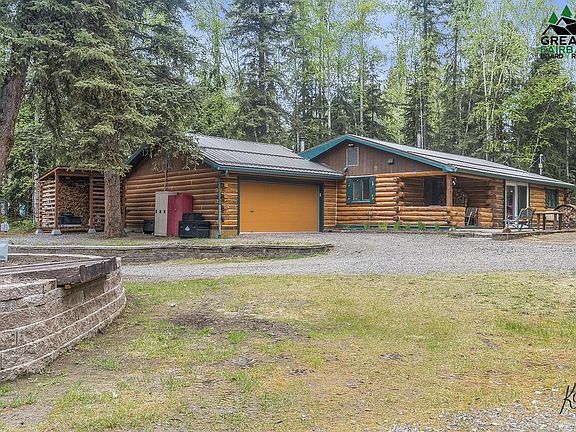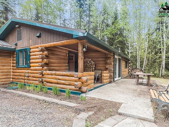 Alaskan Oasis just waiting for you to add flowers and vegetables to the raised garden beds. Enjoy the midnight sun on the concrete patio or relax in a swing under the covered porch. This home has been professionally landscaped with pavers, to include a loading ramp. Enjoy friends and family under the large pavilion or use for storage. When you enter this cozy home, you are greeted with beautiful hickory kitchen cabinets with ample storage. Hard surface counter tops, updated appliances and little finishing touches everywhere you look. Every room in this home has been updated, which is apparent as you seamlessly walk into the living room that boasts a large Quadra Fire woodstove that will easily keep you toasty all winter long. Open that new patio door and let the sunshine flood the home. Lovely updated bathroom with double sinks and those little Alaskan touches that you must see to appreciate. Heated two car garage with an extra storage room in the back that the homeowner used as his firearms vault. No need to worry about replacing a roof as this home has a newer metal roof with double snow stops. This is truly your Alaskan Dream log home that is conveniently located close to Eielson Air Force Base and 5 minutes from North Pole amenities. Schedule your appointment today before you miss this home.