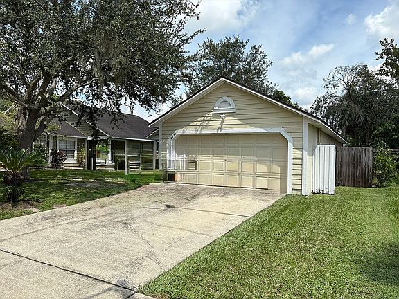 3/2 with great room and vaulted ceilings. Split floor plan. New roof 2018 with repairs 2025 due to squirrel activity. Nice eat in kitchen with breakfast nook. Quiet neighborhood with top rated schools. 2025 - New bathroom vanity/sink tops/faucets. New low flow dual flush toilets. New paint in bathrooms/bedrooms. Touchup paint in all rooms. New baseboard and crown molding in guest bedrooms. New heatpump HVAC installed 2024 (super low electric bills for size of home) with new lines, filter holder, hurricane pad and multi position air handler, wifi thermostat. New front door wifi deadbolt (not programmed). New flattop stove. New fridge and 3 yr old microwave. 2020 updated backyard deck with awning. 2018 new kitchen sink with faucet/disposer. 2024 new LED motion light above garage door. 2022 New garage door opener.
