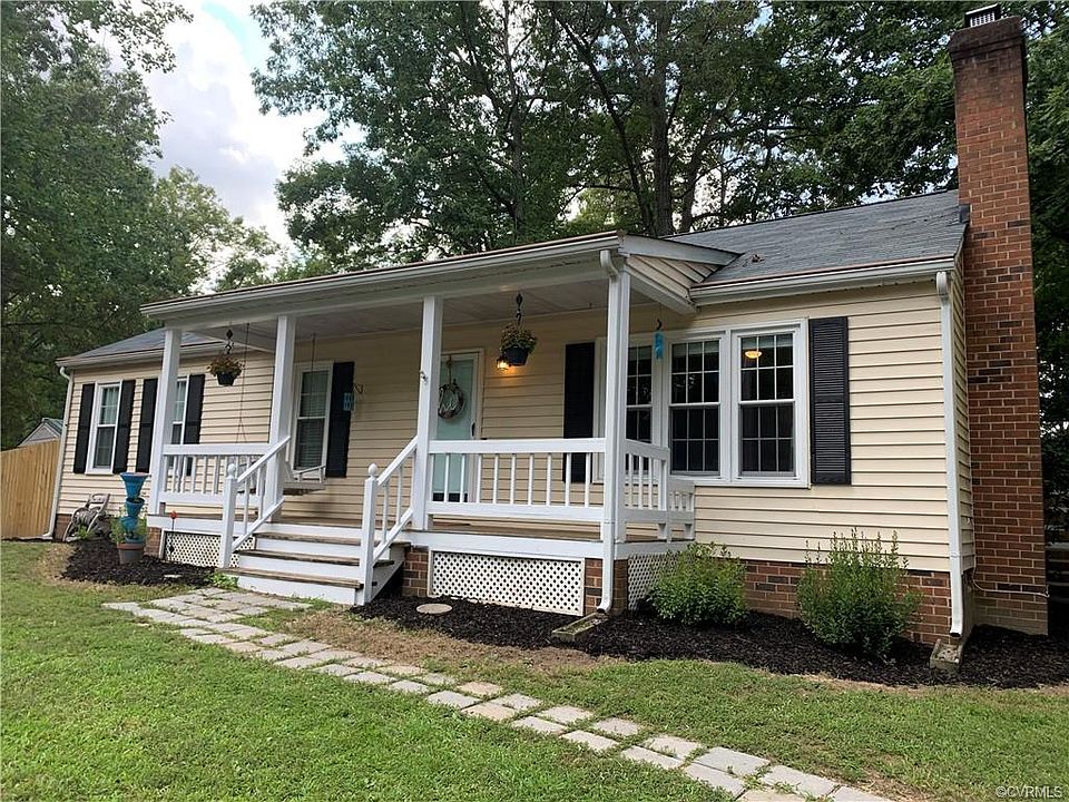 Cute rancher located in Clarendon neighborhood in Midlothian! Updates include new flooring in the foyer, family room, bathrooms, and kitchen. Ceiling fans have been added. Kitchen updates include painted cabinets, refinished countertops, new hardware, new stainless steel appliances, crown molding, and beadboard backsplash. Hall bathroom has been updated with new mirror, vanity, toilet, chair rail, and faucets. HVAC was replaced in 2018 and the roof was replaced in 2016. Recently, the owners have built a new deck and installed a privacy fence. The fireplace, chimney, flue, carport, playset and shed convey in as-is condition. Still room for the new owners to add their own final touches! Sellers are offering a 1 year home warranty through America's Preferred Home Warranty ($425)
