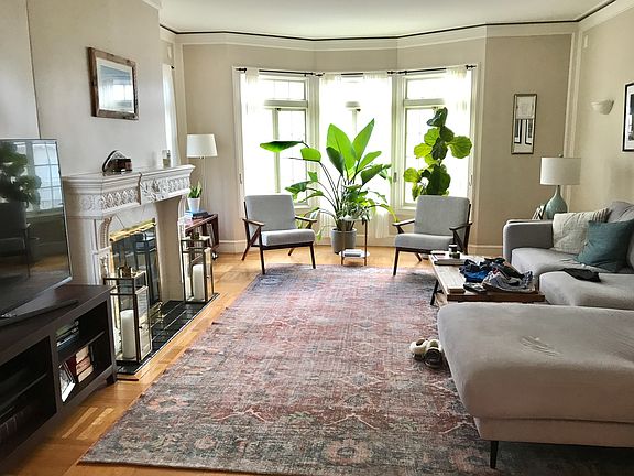 MAGNIFICENT, Spacious, One Bedroom Scott Street at Union Top floor SUNNY condo of a 6 unit building. Shared roof deck offering AMAZING Views!! Sunny Kitchen with small deck. Spacious, west facing living room with gas fireplace. Formal Dining Room with large closet and doors to the small deck. Large bedroom with walk-in closet / ensuite bathroom. Transitional area has been used as a lounge space, office, library and nursery. Hardwood floors. Edwardian, 1926 period style light fixtures and trim. Three additional closets in hallway. Storage unit on ground floor. Laundry on premises 1 Car Parking is available in the building for $350. Near the 41 and 45 bus lines Amazing location close to both Union Street and Chestnut Street. Images include different tenants' furnishings Owner pays water and garbage, Renter pays Gas & Electricity