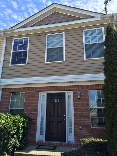 Do not miss your chance to rent this beautiful 2 bedroom 2.5 bath townhome is ready for immediate occupancy. This home will not last long. Open floor plan with hardwoods and decorator paint on the lower level. Kitchen with island, oversized walk-in pantry and full walk-in laundry room. The second level has two large bedrooms with cathedral ceilings, walk-in closet and private baths in each room. Perfect roommate plan. Rent includes water, sewer, trash pickup and landscaping. All the tenant pays is electric. Call Chris at 404-242-0083 to view home.