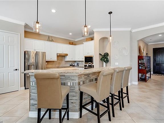 GOLF MEMBERSHIP INCLUDED! Now offered fully furnished, this beautifully appointed 4-bedroom, 2-bath single-family Princeton model features a spacious 3-car garage and comes with bundled golf, giving you full access to the Gordon Lewis designed golf course and resort-style amenities. A modern kitchen with freshly painted white cabinets feels crisp and inviting, with the clean lines and bright finish instantly opening up the space. Featuring crown molding, coffered ceilings, impact windows, and plantation shutters and Brand NEW AC installed Sept 2025. Step outside to your private outdoor retreat, complete with a custom sparkling pool, sunken relaxing hot tub, upgraded travertine paver lanai, and an outdoor summer kitchen—perfect for entertaining or unwinding in style. Sparkling beaches are just a short drive away. Bonita National Golf Club offers an aqua driving range, practice putting green, and a chipping area with a sand bunker that will help you prepare for your round. Bonita National also offers clubhouse dining, poolside cafe, attended fitness center, tennis courts, pickleball, sauna, U-Topia Spa, golf shop, tennis shop, main pool, lap pool, hot tub, and an onsite administration office. Live the Florida lifestyle with luxury, comfort, and endless recreation right at your doorstep.