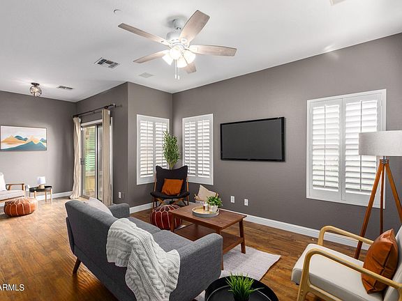 Welcome Home! Seller is very motivated and willing to work with your buyer! 4bed 2.5 bath, beautiful wood-like flooring throughout, plantation shutters, NEW A/C, ROOF IN GREAT CONDITION, surround sound speaker system installed, low maintenance back yard and designer paint throughout! This beauty is nestled into one of Gilberts most popular communities- the multi award winning, Agritopia! Agritopia offers 11 acres of certified organic farmland, and Americas #1 rated dog park! Where shady tree-lined sidewalks lead you to chef-driven restaurants, a quaint neighborhood coffee shop, community farming, community pool and neighborhoods filled with charming homes and friendly neighbors.Just minutes from the Epicenter and Top Golf! Location is everything!