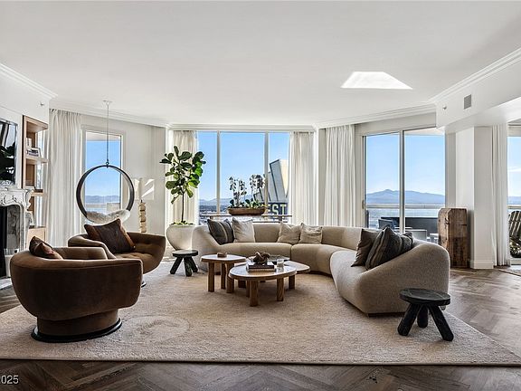 Exceptional, top to bottom renovated Turnberry Place Penthouse, customized Model "F" Penthouse, offering breathtaking panoramic views of the iconic Las Vegas Strip, Wynn Golf Course, and the prestigious Las Vegas Country Club Golf Course. Upon entering, you are greeted by a private vestibule that leads to a luxurious bright, open layout, where every detail has been professionally designed and furnished for sophistication and comfort. The cheerful great room seamlessly leads into the dinning room, an open kitchen, marble wet bat, custom woodwork and a fireplace. Primary Suite features 2 bathrooms, 2 walk-in closets, sitting room and balcony! With 3 expansive terraces and huge windows, this home offers tons of outdoor space to enjoy the Skyline, East, West and South Views! Skip 2 years of renovations, take advantage of an incredible move-in ready, turn-key home, with superb location, 24/7 valet/doorman/security, pool/spa, gym, 5 star hotel services and amenities. True one-of-a-kind gem!!