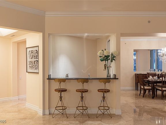 Incredible Opportunity at Turnberry Place Tower Two. Located on the penthouse level, this stunning residence showcase 10-foot ceilings & breathtaking views of the Vegas Strip, mountains, downtown, golf course & a premium vantage point of the Stirling club main pool & courts. Step through the private foyer into an enormous living room & stunning stone floorings. This spacious 4,103 ft.² Sky-high home features 4 en-suite bedrooms, a powder room, a well-sized laundry room complete w sink & cabinetry & 2 car spaces. Additional highlights include electronic shades throughout & furnishings. The HOA fee covers; water, gas, wifi, cable, valet, security, concierge, limo services & more. Resort-Style Amenities at The private Stirling Club offering a full-service spa, salon, barber shop, state-of-the-art fitness center, pickle-ball, Pilates classes, fine dining restaurant & sophisticated bars & lounges— Make this place yours & enjoy the beautiful sceneries from your new private 479 ft.² terraces!