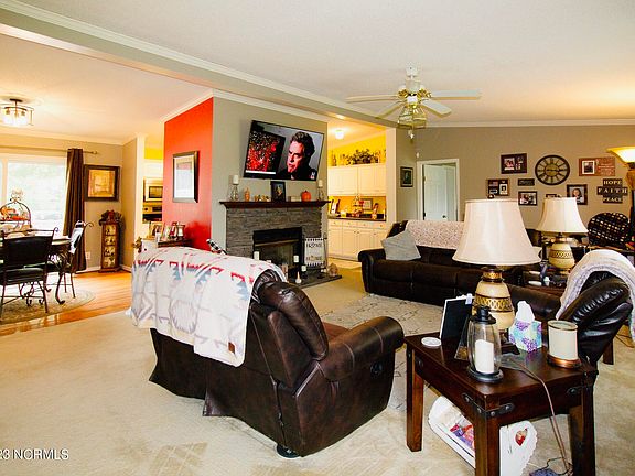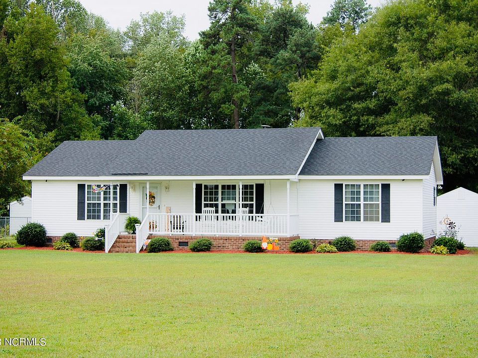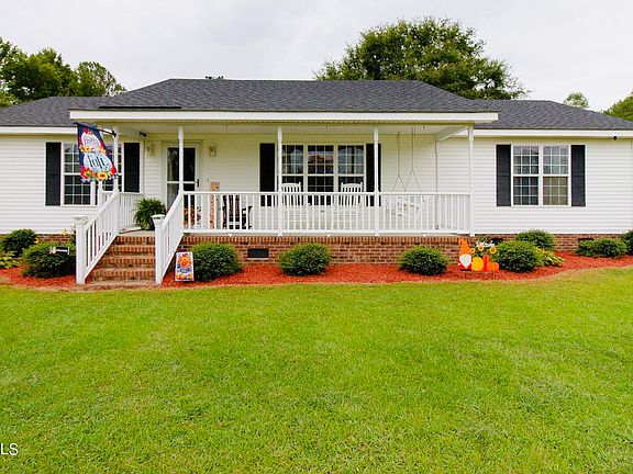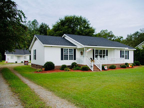 Well kept 3 bedroom, 2 bath MODULAR on over an acre lot in the county! This home is move in ready!! This home has a large living room area with a fireplace. Just off the living room is the dining area and kitchen. On one end of the home you will find the spacious master bedroom and bath. The bathroom has a double sink vanity, walk in shower and a garden tub! The other two bedrooms are located on the other end of the home as well as the guest bathroom. This home has stainless appliances, a newer roof on the home and brand new roof on the detached garage. With a detached one car garage and 2 additional out buildings one which has power and a window AC, this home has plenty of outside storage! The home and garage have a wired security system with cameras. This home also has a nice large deck on the back great for an entertaining space. Or enjoy the large covered front porch!