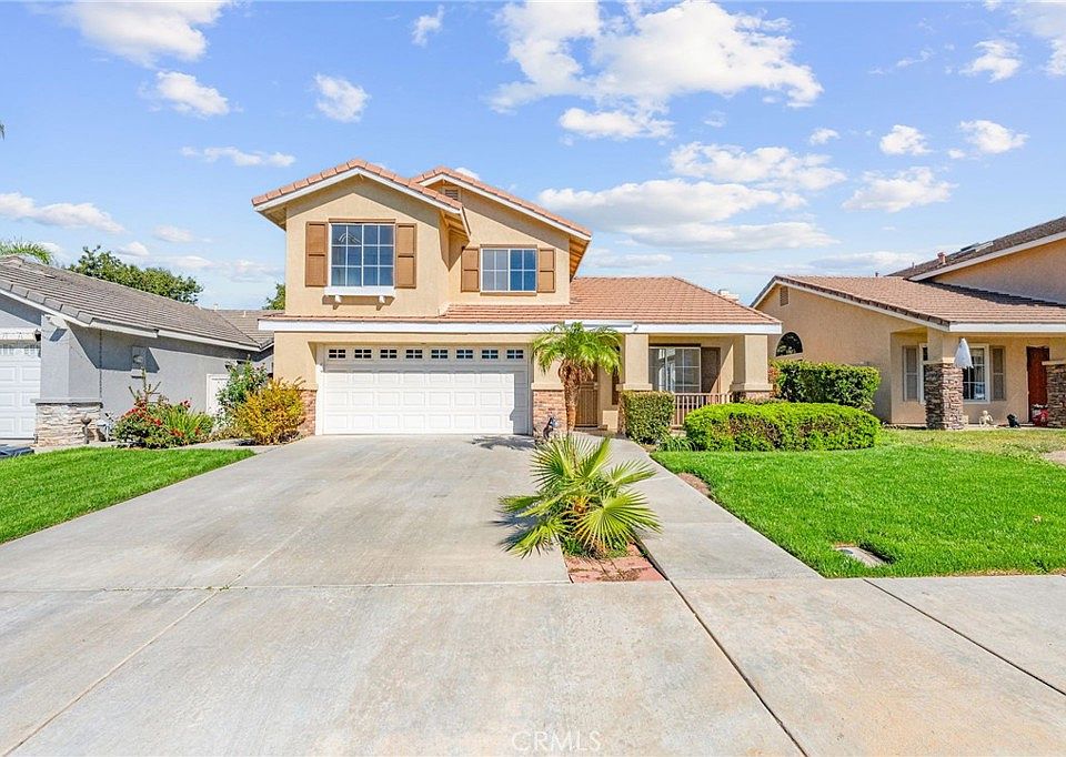 Welcome to 28570 Sand Island Way, a spacious 4 bedroom, 3 bathroom home in the highly desirable Menifee Lakes community offering a bright open layout that connects the living room, great room, and kitchen for easy everyday living and comfortable entertaining. The kitchen features newer stainless steel appliances, a center island, and generous cabinet space that flows into the inviting family room with a classic brick fireplace that creates a warm focal point for gathering. The main floor includes a full bedroom and bathroom along with indoor laundry for added convenience and flexibility for guests or multigenerational living. Upstairs, the primary suite provides a peaceful retreat with a walk in closet, dual sinks, and a separate soaking tub and shower, while three additional bedrooms and a full bathroom with a tub shower combo offer room for work, hobbies, or a growing household. The backyard provides a blank canvas with potential for a custom outdoor space, and the refreshed front yard adds to the home’s curb appeal. Living in Menifee Lakes means enjoying access to walking trails, a beach style pool, lake activities like canoeing, nearby parks, schools, shopping, and dining, all within a community known for its welcoming atmosphere and convenient location. This is an incredible opportunity to own a beautifully laid out home in one of Menifee’s most sought after neighborhoods.