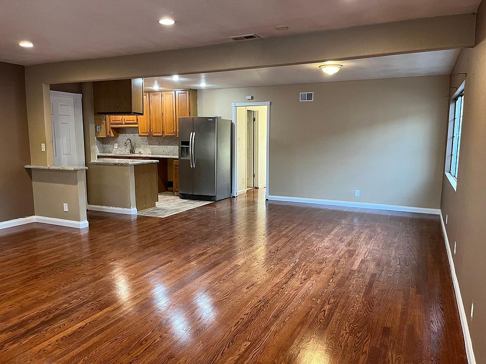 Fresh refinished hardwood floors. Fresh paint throughout. 3 bedrooms and 2 full bathrooms. Central Heating. 2 car garage. Laundry-hookups in garage. Large storage in backyard. Renter responsible for water, gas and electricity. First month rent + deposit due at signing, lease for 1 year. No smoking, no pets. 2 car garage and 2 car in driveway. Fresh paint, fresh refinished hardwood floors. Low maintenance front and backyard. Large living room/dining area.