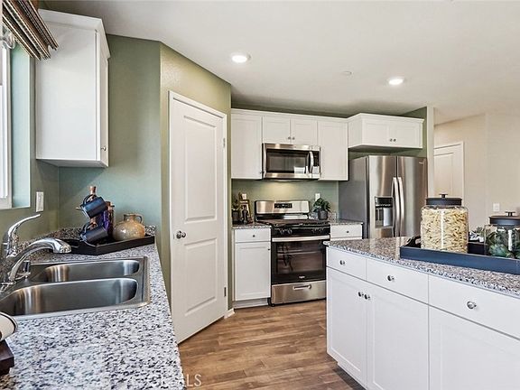 NEW CONSTRUCTION in Winchester with SOLAR INCLUDED!! - welcome to Pradera Place. This beautiful 1,352-sf single-story home with a California Spanish-Hacienda façade has 3 bedrooms and 2 full bathrooms and ALSO INCLUDES; REFRIGERATOR, WASHER/DRYER, WINDOW BLINDS AND BACKYARD LANDSCAPING! The Island kitchen with island eating area has New Valle Nevado granite counters, built-in stainless-steel appliances and a walk-in pantry. The interior comes complete with White shaker-style cabinetry, lots of included recessed lighting, vinyl in common living areas, bathrooms and laundry, and plush carpet flooring in bedrooms, stairs and closets. There is a generous size main bedroom with ensuite bathroom and walk-in closet, 2 additional bedrooms and full bathroom and a laundry room. There is also a direct-access two car garage PRE-PLUMBED for an electric car! This truly modern home has all the SmartHome features you would expect and, is LANDSCAPED AND IRRIGATED in the front and back yards. This home is near park area, tot lots, half-basketball courts and freeway access. The home is anticipated to be move-in ready the end of December and we can't wait to work with you to Welcome your client Home!!