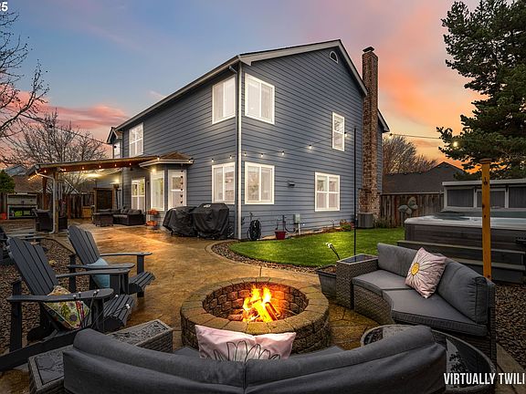 This beautifully updated Wilsonville home has had so many wonderful updates--newer siding, windows, furnace, A/C, flooring, tankless water heater and a BRAND-NEW kitchen that truly steals the show! You'll love the quartz countertops, new cabinetry, sleek finishes, and a custom LED epoxy bar that brings the whole space to life. Downstairs, there’s also a dedicated theater room—perfect for movie nights, gaming, or just hanging out—as well as a flexible office or 4th bedroom ideal for working from home or hosting guests. Upstairs, the huge bonus room gives you even more space to spread out and make it your own. The primary suite feels like a retreat with a jetted soaking tub, dual-head shower, and a walk-in closet that's ready to be filled. Outside, the backyard is designed for easy living and year-round fun: low-maintenance turf, stamped concrete, a covered patio with cooling misters, raised garden beds, and a big fire pit for cozy evenings with friends, a tool shed and more! Situated on an oversized corner lot with a side-facing 3-car garage, the home has great curb appeal and sits in the highly sought-after Meadows neighborhood. This home is packed with value and personality. It’s been well cared for, thoughtfully updated, and is absolutely ready for its next chapter.