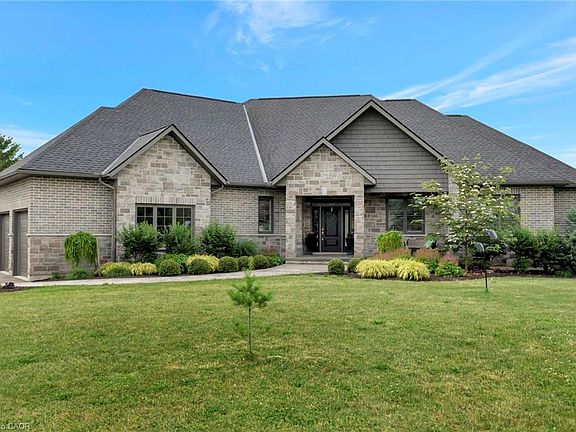 House only on almost 2 acres, Shop available separately, or House and Shop combined on almost 4 acres. Welcome Home to this Beautiful, sprawling executive Bungalow with over 4000 Sq ft of finished living space. Enter into the main foyer where you will find a home office. Continue on into the Open Concept living room, kitchen and dinette with door directly to the covered back porch complete with a build-in gas barbeque. At one end of the house you will find the Primary Bedroom with a 5 pc ensuite, Walk-in closet and sliding doors to an additional patio with a hot-tub. The additional two bedrooms are located at the opposite end of the main level with a 4 pc bathroom between. The massive basement is fully finished with two additional bedrooms, a workout room, a bathroom, and a large rec room complete with a wet bar. Great for family functions and entertaining. The 3 car attached garage has Trusscore walls, floor drainage for melting snow and rain and stairs leading to the main floor and also a set to the basement. The home is situated on an Agriculturally zoned lot. The purchaser of this property would need to own and/or intend to operate an agricultural business on the property to comply with the severance application. As part of this a shop would need to be built on the property. Plan for a 3000 sq ft shop are available and can be included if the buyer is interested. The property would be approx 1.79 acres once severed from adjacent property. Please see MLS#40783711