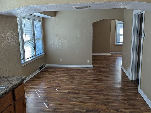 Featuring hardwood floors throughout, a spacious formal living room, dining rooms with built-in decorative mantles, dining room cabinets, a large kitchen (No Appliances), and natural light throughout the home.