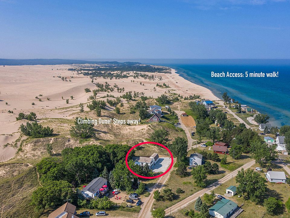 Welcome to Sahara Sands.This stunning, remodeled 4-bedroom, 3-bath home is perfect as a retreat or investment. Enjoy breathtaking Lake Michigan views and direct access to its tranquil waters, ideal for relaxation and outdoor fun. Inside, discover a beautifully updated space with high-end finishes and modern conveniences. The open-concept living area and fully equipped kitchen are perfect for entertaining. Each bedroom offers a restful sanctuary, and the luxurious bathrooms provide a spa-like experience. Outside, unwind in the hot tub, sauna, or outdoor shower, and enjoy cozy nights by the fire pit. An EV charger adds convenience. Located on the back side of the Silver Lake Sand dunes.10 miles to Pentwater, easy commute to the expressway to head North to Ludington or south to Muskegon.