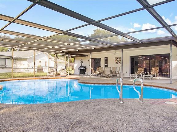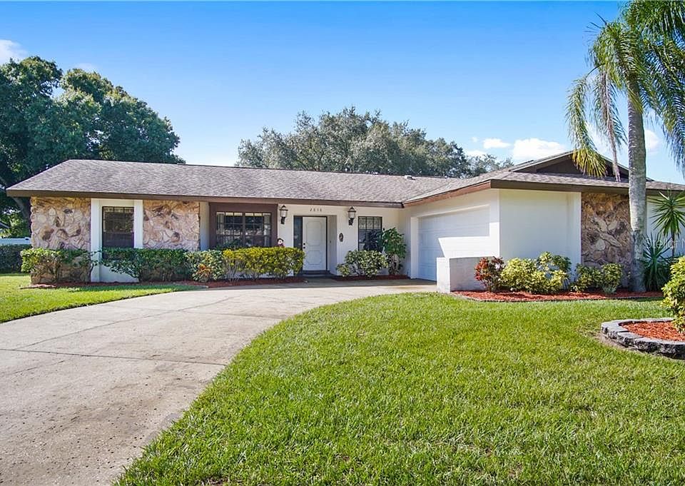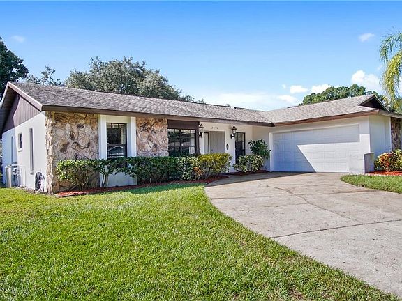 South facing private pool home in the desirable community of Rustic Oaks! Huge lot, with nice landscaping. Large patio area and a good sized pool, relax and enjoy. Owner has used the property as their personal vacation home for the last 25 years. Open, split floor plan with two bedrooms and a bathroom situated to the left and the master bed and bathroom to the right in the home. Kitchen and living room is centered in the middle, great space for entertaining. This home is fitted with a water softener system (Leased) for many years and can be continued by new owner. Rustic Oaks is located very close to Hgwy 19, where you find an abundance of shops, restaurants and grocery stores. Walking distance to Publix. This is the blank canvas you have been waiting for, make it your dream home with your own personal touches, Come view today!