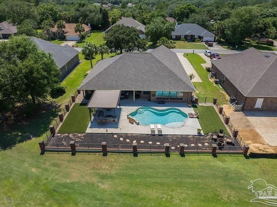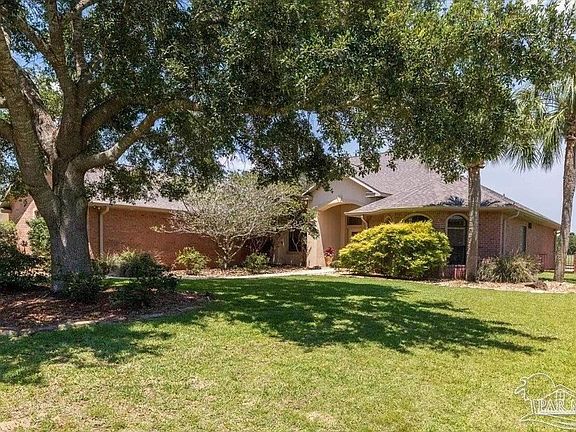 Luxury Golf-Course Living in Hidden Creek Estates! Welcome to 2858 PGA Boulevard — an immaculate 4-bedroom, 3-bath home perfectly positioned on the 11th fairway of the Hidden Creek Golf Course in the desirable Holley by the Sea community. This 3,096 sq ft custom-built brick residence showcases elegant architectural details, a resort-style pool, and exceptional indoor-outdoor living designed for comfort and entertaining. Step inside the grand double-door entry to soaring ceilings, decorative columns, crown molding, and an abundance of natural light. The open, split-bedroom floor plan features formal living and dining rooms, a spacious family room overlooking the golf course, and a private office or flex space with French doors. The chef’s kitchen is the heart of the home, complete with granite countertops, stainless-steel appliances, a large center island, breakfast bar, and custom cabinetry. The adjoining breakfast nook and leisure room open to the screened lanai for effortless entertaining. The luxurious primary suite offers serene golf-course views, direct pool access, a spa-inspired bathroom with dual vanities, a jetted garden tub, a tiled walk-in shower, and a large walk-in closet. Three additional bedrooms and two full baths provide ample space for family or guests. Enjoy Florida living at its finest in the backyard oasis — complete with a sparkling in-ground pool, sun deck, outdoor kitchen, and panoramic fairway views. The beautifully landscaped .34-acre lot also includes an irrigation system, privacy fencing, and a side-entry 2-car garage. Residents of Hidden Creek enjoy exclusive access to the Holley by the Sea Recreation Center featuring tennis, pickleball, fitness facilities, multiple pools, a private beach house with boat launch, and year-round community events. Conveniently located near top-rated schools, shopping, and the white-sand beaches of Navarre Beach, this home delivers a rare combination of elegance, lifestyle, and location.