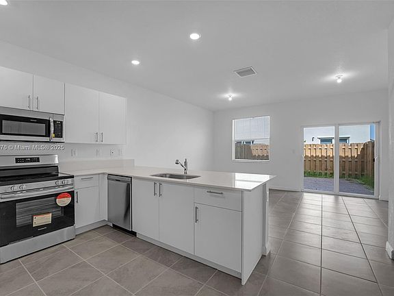 This brand-new two-story townhouse features three spacious bedrooms, two full bathrooms, and one half-bath. The spacious layout includes a family room, dining room, and kitchen, while a separate living room offers additional space for relaxation and entertainment. All bedrooms are on the second floor. The kitchen is equipped with SS appliances, quartz countertops, and plenty of cabinet space. Elegant ceramic tile flooring, while the second floor is covered in comfortable carpeting. Large, fenced patio, perfect for relaxing or entertaining. Perfectly located near schools, Turnpike Exit 2, retail shops, restaurants, a hospital, Amazon Distribution Center, and Homestead Air Base. Association approval takes 30 days, and tenants are responsible for their own water and electricity.