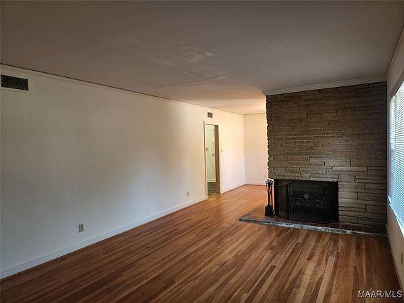 Entering through the front door into the formal living room the first thing you notice besides the large open area with stone gas log fireplace are the beautiful hardwood floors that run through most of this home. This room overlooks the front yard through a large picture window. At the back side of the fireplace is the dining area which is adjacent to the the kitchen entry. The kitchen has cabinet space, upper and lower, an electric stove, built in microwave and refrigerator. Just off of the kitchen is a large laundry room with brick floors and plenty of storage cabinets. There is access to both the attached carport and the screened in back porch from this space. To the other side of the kitchen is the den area. This room is carpeted, has a storage closet, a ton of space and a door leading to the screened in back porch. To the back of this room is the oversized primary bedroom with walk in closet and private bath with separate shower. Back through the den and down the hall you first come to the hall bath, which has tile flooring and a built in linen closet. Just behind this is the second bedroom with its own attached private bath. Across the hall is the third bedroom, which is carpeted, but the hardwood flooring runs through this room as well. Out back is a large screened in porch leading you into the fully fenced yard. The entire inside of the home has been repainted and new carpets just installed. With all this space, a great split floorplan, covered parking and a large fenced in yard, this just has to be the one you have been waiting for.