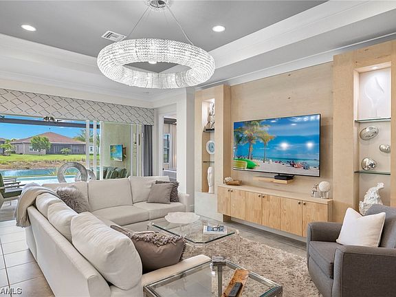 PRICE IMPROVEMENT - Indulge in the pinnacle of luxury living with this exquisite high-end home, the sought-after Cabernet model crafted by GL Homes. Enhanced with a host of meticulous post-build upgrades, this residence promises opulence at every turn. Nestled on a premium lakefront lot, prepare to be captivated by the panoramic views that greet you. Enjoy a gourmet kitchen, complete with a gas range and an abundance of custom cabinets. Three bedrooms, along with a versatile den that transforms into a fourth bedroom, which provides ample space. Step outside to your own private oasis, featuring a beautiful custom-designed oversized pool and spa. Revel in the tranquil water features, including bubblers & deck jets, as you relax on the sun shelf with ledge lounger chairs and a table with an umbrella. This home is not only a masterpiece, but also a gateway to the extraordinary lifestyle offered by Valencia Bonita—the premier active community in SWFL. Embrace the world-class amenities, including pickleball, tennis, bocce, theater, cooking demos, a fire pit, arts & crafts, a dog park, and state-of-the-art fitness facilities. Your dreams of an exceptional lifestyle start here.