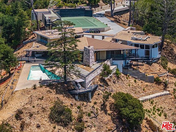 Perched atop a private 2.9-acre promontory with expansive views, this storied estate - once home to a Hollywood legend and originally designed by architect William S. Beckett - presents an incredible opportunity. With plans by Woods + Dangaran and Olson Kundig, this is a rare chance to restore one of Los Angeles' iconic architectural estates. A long, gated driveway winds through the property, revealing a multi-structure compound. The main house, reminiscent of Neutra and Lautner, boasts sweeping extended rooflines and walls of glass that frame panoramic views. The three-story creative studio/guest house offers a screening room, three guest bedrooms, a spa level with a gym, massage room, and sauna and expansive rooftop terraces that overlook the private tennis court. Beyond the estate, there is a private gate that lends access to the scenic trails of Franklin Canyon. This is your chance to restore this legendary pedigree property - plans available upon request.