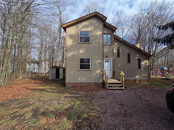 - Exterior features: 1st floor bedroom, 3 bedroom 2 bathroom, Open Concept, Pocono Country Place, Shed, backyard