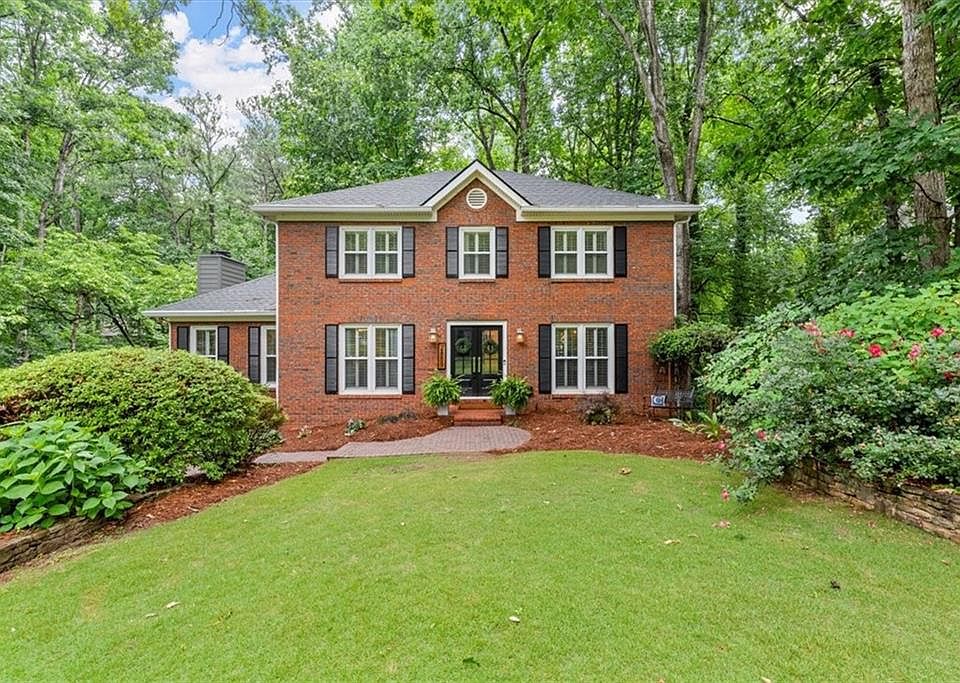 You will love this East Cobb stunner in one of the top swim and tennis neighborhoods. Situated on a private lot, the home offers the perfect combination of modern amenities and traditional appeal. You will immediately notice the new roof and gutters, front double doors, and recently installed double pane windows that enhance the energy efficiently and comfort of the home, and the professional landscaping and newly installed lighting designed to showcase the beauty of the surroundings. Step inside into the double doors to discover the custom wrought iron stair rail and gleaming oak hardwood flooring throughout the main level. Work from home in the front office with on-trend chandelier lighting. Gather in the beautifully updated kitchen with custom white cabinets, tile backsplash, stainless appliances including Dacor double ovens, gas stovetop with pop-up downdraft vent, refrigerator, dishwasher, LED under cabinet lights and recessed lighting, pantry and island with granite counter top that opens to the light-filled, eat-in dining area. Sit back and relax with your favorite beverage while enjoying the warmth of the fire in the family room with built-in wine bar or outside listening to the babbling brook on the expansive double deck with views of nature. Covet time alone or entertain guests on the large screened-in porch. Upstairs you will find a spacious primary bedroom with trey ceiling and hardwood flooring. Indulge in the primary bathroom with separate vanities and separate tub, and walk-in shower. There is plenty of space for family or guests in the accompanying bedrooms that share a spacious bathroom with on-trend tile and hardwood flooring, a tub/shower combo, double vanity and stylish fixtures, lighting and double mirrors. The finished terrace level is the ideal place to cheer on your favorite sports team, workout, play your favorite games or use as a bedroom suite with the full bathroom. You will love all of the space with a storage/work room that would make an excellent workshop. The award-winning schools, neighborhood events and amenities including 2 event pavilions, 4 brand new tennis courts, brand new multi-purpose court for pickleball and basketball, pool, and playground complete the attributes that make this a must have home.