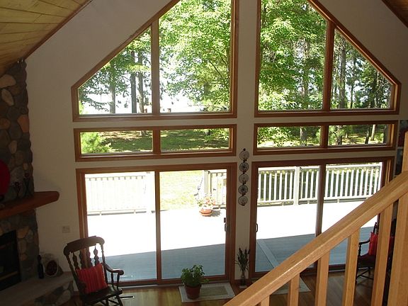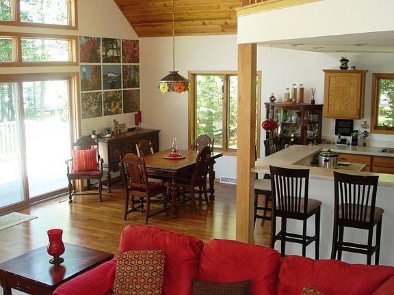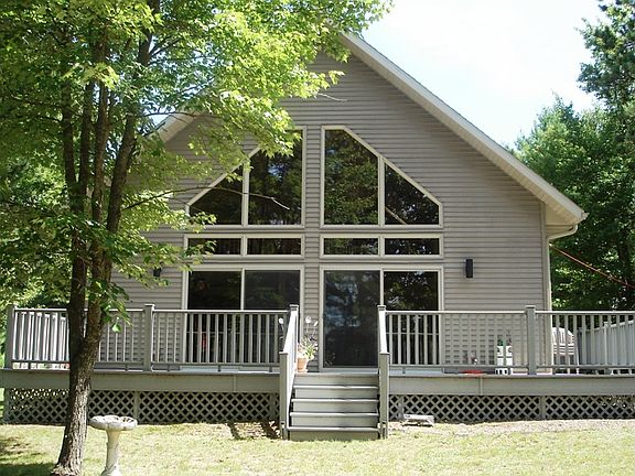 This well kept 3 bed / 2 bath home is situated on a 2.19 acre park like setting. Level lot right to the waters edge, crystal clear & shallow along the shore. Great fishing. Floor to ceiling fieldstone fireplace next to the lakeside wall of windows. Included in the loft area, a 15' x 27' bonus room for the kids or guests. 2+ car attached garage plus pole building for the toys. Wrap around composite deck is perfect for entertaining. Guardian generator. $319,900