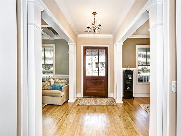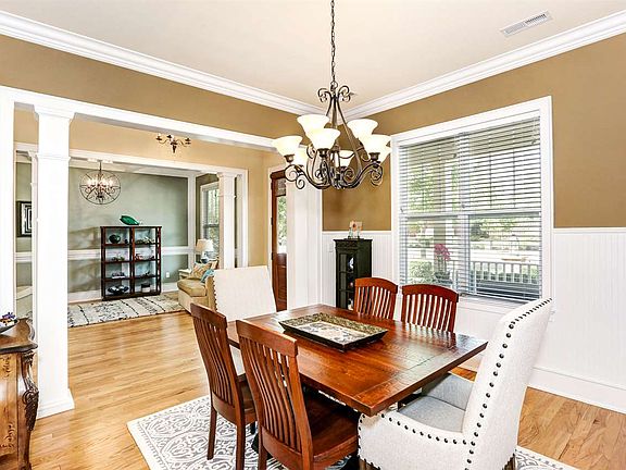 Beautiful custom 3bed/3bath home in lovely Olde Cobblestone w/ walking trails, community pool & unique setting. Main level living w/ added feature of upstairs guest suite/bonus. Heavy crown molding and trim throughout. Exquisite coffered ceiling in sitting room/study. Open concept living w/ kitchen, living area w/ gas fireplace, & private courtyard w/ wood burning fireplace. Kitchen w/custom cabinets, granite counters, quartz topped island, dbl ovens, ss appliances. Large isolated master has en suite tile shower, jetted tub, & large walk in closet. Hardwoods on main level & tile in wet areas. Large closets & added cabinets for extra storage. Surround sound in/out. Frig, W/D to stay.