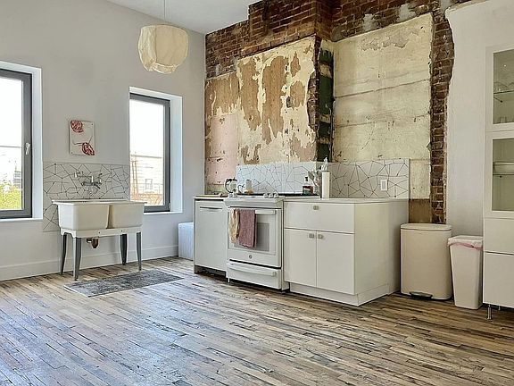 A rare Brooklyn industrial-chic loft. Meticulously renovated in 2024, this bright and airy third-floor unit pairs sleek upgrades with raw, textured details including exposed brick and semi-finished plaster walls, creating an unmistakably edgy draw.