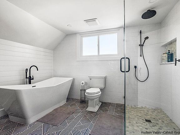 Claim an exceptional slice of Kingston history with this mixed-use, two dwelling compound with pastoral views. Teeming with history yet immaculately updated, this property is perfectly situated to provide easy access to Kingston, Rhinebeck, Woodstock & I-87. Potential use scenarios are boundless as zoning permits both properties to offer live/work opportunities, and the main house is already a successful Airbnb. The 3,128 sq ft main house dates from 1810 and is constructed of stone with ax-cut chestnut ceiling beams and well preserved wide-board hemlock floors. It has just been thoughtfully updated to include three new cleverly designed bathrooms. The renovated gourmet kitchen boasts custom cabinets; quartz countertops; and a huge picture window opening up the vista of rolling hills behind the house. AC is provided via Mitsubishi mini splits. A large sunroom runs the length of the back of the house and opens out to the fire-pit & entirely fenced in (pet-friendly!) back yard. The separate 2-bedroom 1-bathroom cottage, built in 1932, is a popular rental with a proven track record. While currently used as a residential dwelling, in its history it has served as an office and an antique store. Each building has its own separate drilled well and septic system. Both have roofs with plenty of life on them, buried utility lines, refinished floors, and updated systems, including a Buderus boiler in the main house. Bring your imagination and let these strategically located properties pay for themselves!